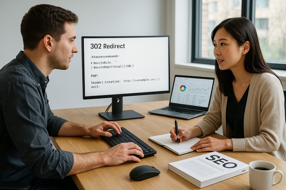 ここでは.htaccess・PHP・WordPressプラグインでの302リダイレクト設定例と注意点を解説します。